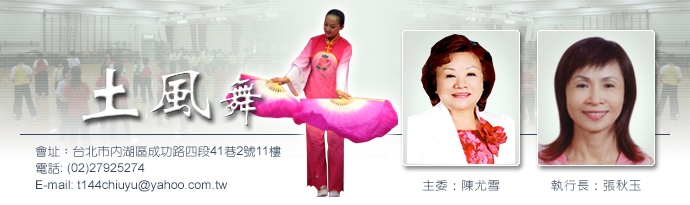 | 港墘土風舞 | 郭秀蓮 | 0938576665 | 港墘活動中心 | 週一~週五AM 6:00~9:00 | 賴添煥 | - |